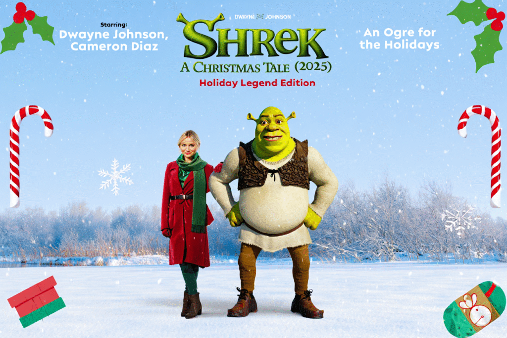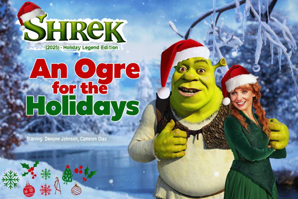 Two decades after his debut, everyone’s favorite green ogre returns — with a twist that’s as unexpected as it is delightful. Shrek: A Christmas Tale (2025) reimagines the grumpy swamp-dweller as the unlikely hero of a full-fledged holiday epic, this time voiced by Dwayne “The Rock” Johnson, whose booming charm and heartfelt delivery give Shrek a whole new layer of festive swagger. Directed with warmth and humor, this fan-made concept delivers everything you’d want from a Christmas classic: laughter, heart, adventure, and just enough ogre-sized chaos to shake the snow off the rooftops of Far Far Away.