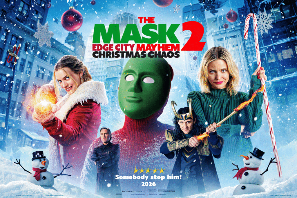 Thirty years after the original mayhem shook Edge City, The Mask 2: Edge City Mayhem – Christmas Chaos (2026) brings back the green-faced whirlwind of chaos with a holiday twist that’s bigger, weirder, and wilder than ever. Jim Carrey returns as Stanley Ipkiss, now a slightly anxious but charmingly eccentric retired museum curator whose peaceful life comes crashing down the moment the Mask resurfaces—literally—on the shores of Edge City.