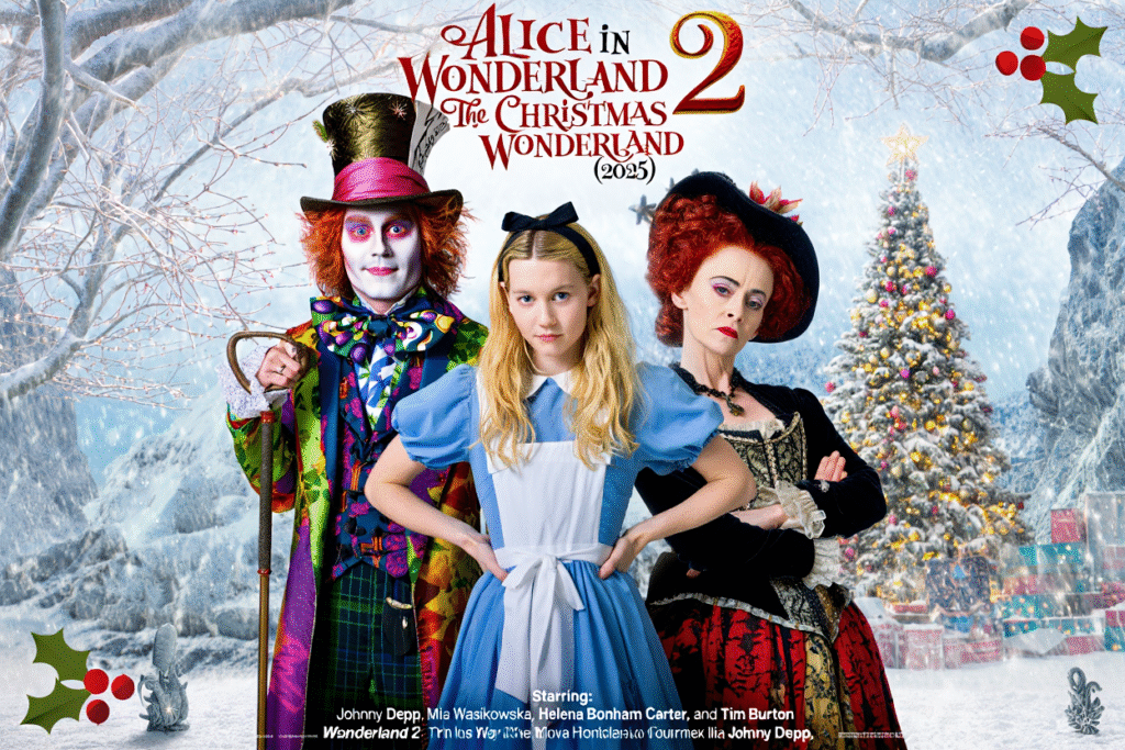 Winter comes early—and ominously—to Wonderland in Alice in Wonderland 2: The Christmas Wonderland (2025), a dazzling holiday sequel that blends Tim Burton’s signature gothic whimsy with the warmth and wonder of Christmas. Mia Wasikowska returns as Alice, now older, wiser, and still forever tied to the enchanting world she once saved.