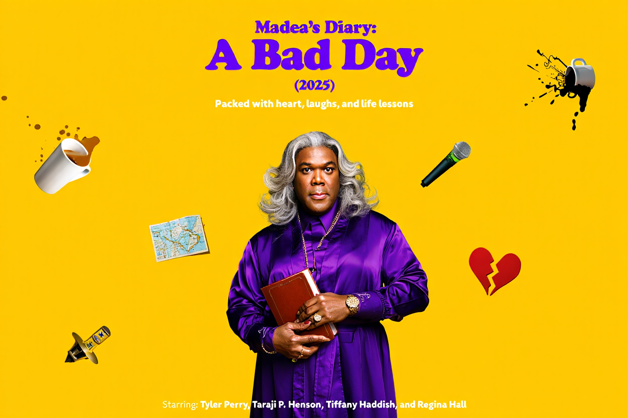 Madea’s Diary: A Bad Day (2025) feels like a confessional wrapped in comedy, offering one of the most personal and unexpectedly reflective entries in the Madea cinematic universe. Tyler Perry once again unleashes his iconic matriarch, but this time with a framing device that adds surprising emotional depth: Madea’s secret diary, a place where humor, regret, wisdom, and survival collide.