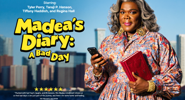 Madea’s Diary: A Bad Day (2025) feels like a confessional wrapped in comedy, offering one of the most personal and unexpectedly reflective entries in the Madea cinematic universe. Tyler Perry once again unleashes his iconic matriarch, but this time with a framing device that adds surprising emotional depth: Madea’s secret diary, a place where humor, regret, wisdom, and survival collide.