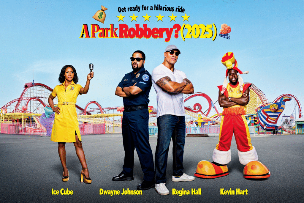 A Park Robbery? (2025) is exactly the kind of high-concept comedy-action mashup that Hollywood loves—and when you combine Ice Cube, Dwayne Johnson, Regina Hall, and Kevin Hart in an amusement park setting, the results are predictably loud, fast, and crowd-pleasing. The film leans into its absurd premise with confidence, delivering a rollercoaster of slapstick action, mismatched buddy energy, and surprisingly sincere heart.
