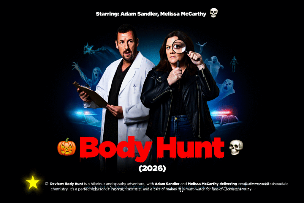 ⭐ Final Verdict: Body Hunt (2026) is a smartly constructed comedy-horror that thrives on chemistry, atmosphere, and tonal confidence. With Adam Sandler and Melissa McCarthy firing on all cylinders, the film delivers laughs, chills, and a mystery that actually sticks. It’s messy in the best way—wild, weird, and thoroughly entertaining. 🎃💀