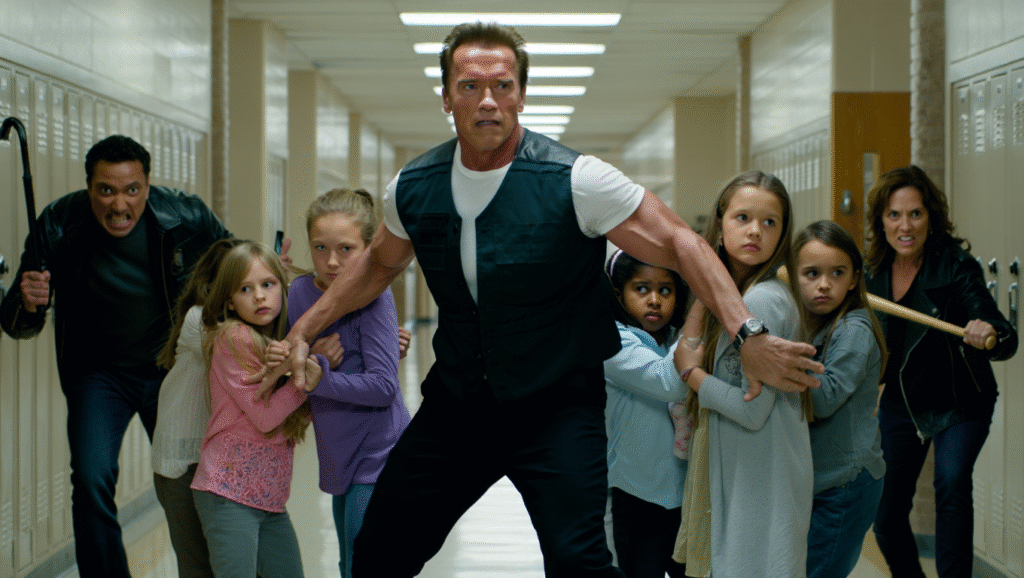 The comedy works because it leans into the absurdity of Schwarzenegger’s presence in a kindergarten setting. His towering frame against tiny desks, his Austrian accent scolding mischievous children, his sheer bafflement at the logic of a five-year-old—it all lands with perfect timing. Yet beneath the laughs lies a genuine sincerity: the film never mocks the value of teaching, but instead highlights it as one of the hardest, most heroic professions.