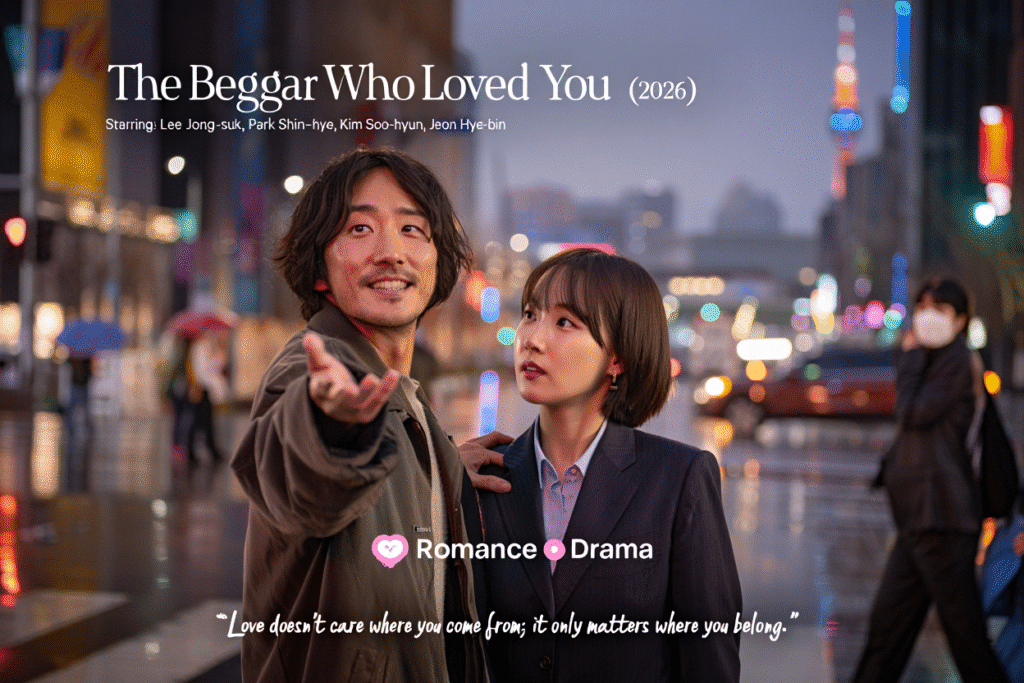 The Beggar Who Loved You (2026) is a quietly devastating romantic drama that dares to ask a question many films are too afraid to explore honestly: when everything is taken away, who are you—and who will still choose you? Set against the restless, indifferent heartbeat of Seoul, the film transforms a seemingly simple love story into a profound meditation on dignity, loss, and emotional survival.