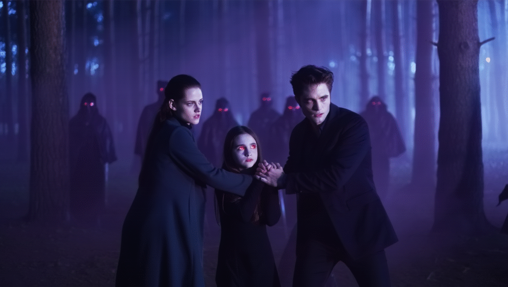 The narrative threads her destiny through both old rivalries and emerging threats. The Volturi’s lingering shadow stretches ominously across the storyline, but the script wisely avoids retreading old conflicts. Instead, new adversaries are introduced, drawn from previously untapped corners of vampire lore. Ancient covens and forgotten myths resurface, expanding the mythology in ways that feel both organic and exhilarating.