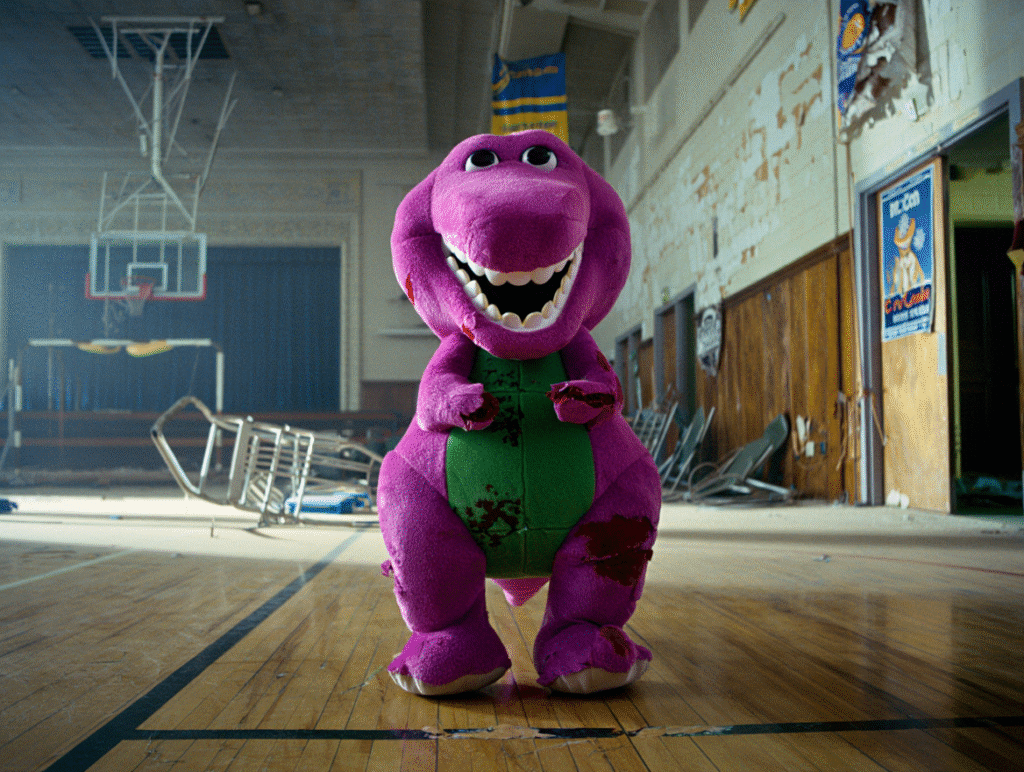 What makes Barney truly effective is its refusal to frame the creature as pure evil. The monster is not simply a killer — it is a manifestation of unresolved childhood fear, neglect, and emotional manipulation. The film suggests that Barney didn’t “turn bad”; he absorbed everything the children projected onto him. Love. Fear. Dependency. Silence.