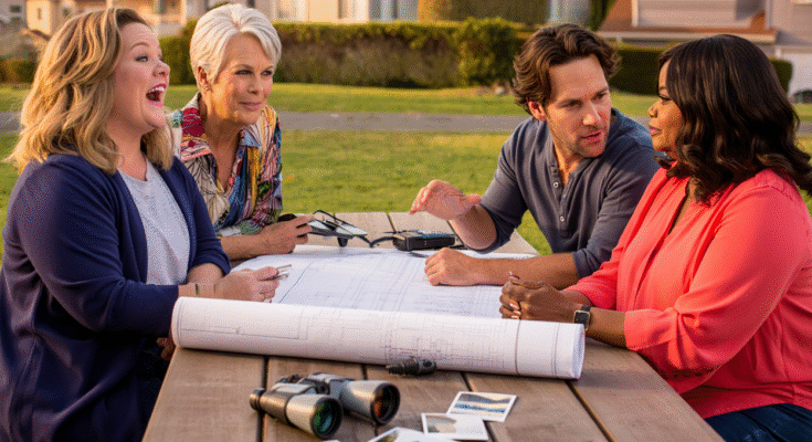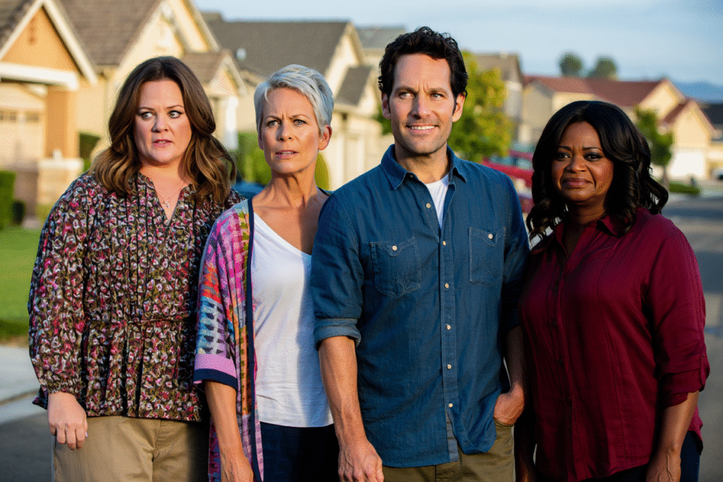 Jamie Lee Curtis is a standout as Linda, the eccentric best friend who treats neighborhood drama like a competitive sport. Curtis leans into dry wit and barely concealed glee, becoming the film’s chaos catalyst. Every scene she’s in gains momentum, and her chemistry with McCarthy feels effortless, like two women who’ve survived enough nonsense to stop playing nice.
