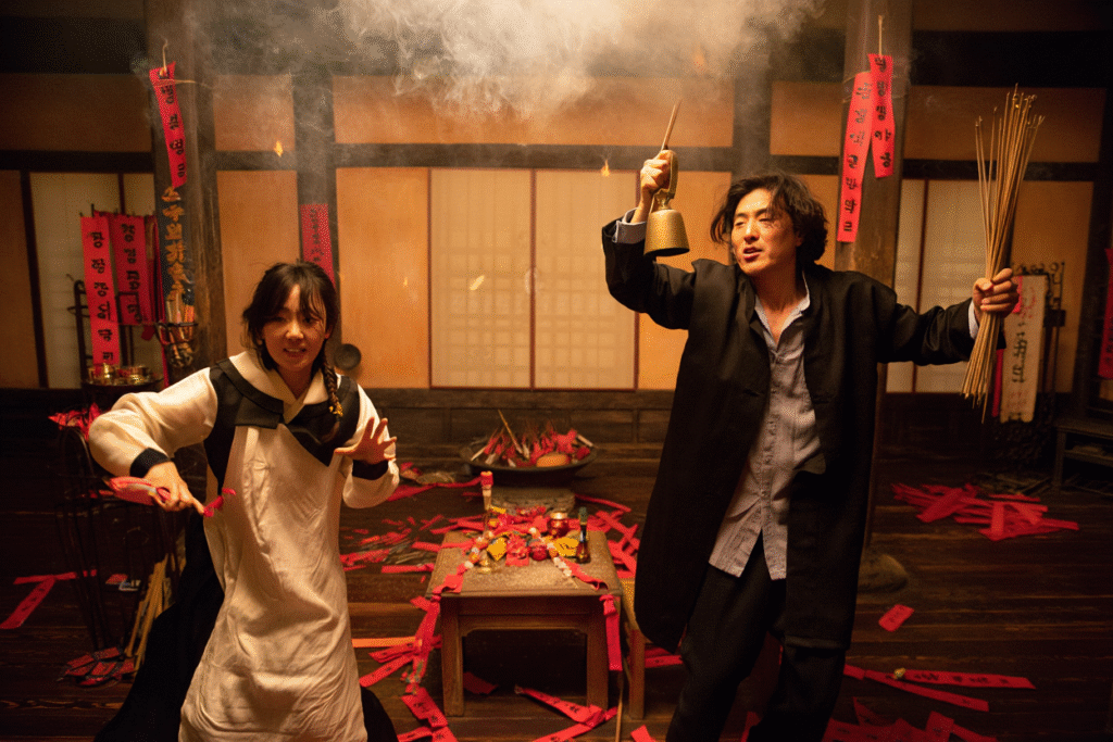 The main haunting takes place in an old house in the middle of Seoul, which quickly becomes the stage for a series of chaotic exorcism attempts. Each ritual seems to unleash something stranger than the last.
