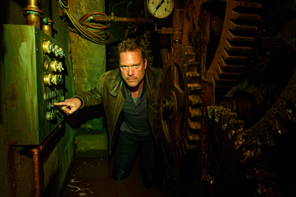 Matthew Lillard delivers one of the film’s most entertaining performances as a chaotic paranormal expert who understands the mechanisms hidden inside the mansion. Lillard’s unpredictable energy injects moments of dark humor into the tension while also revealing a character who knows far more about the house than he initially admits.