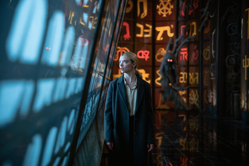 Anya Taylor-Joy leads the film as the reluctant heir to the strange estate, bringing her signature intensity and emotional nuance to a character drawn into a nightmare she never expected. Her portrayal balances curiosity and vulnerability, making the audience feel the growing dread as she slowly realizes the house she inherited is less a gift and more a trap waiting to be triggered.
