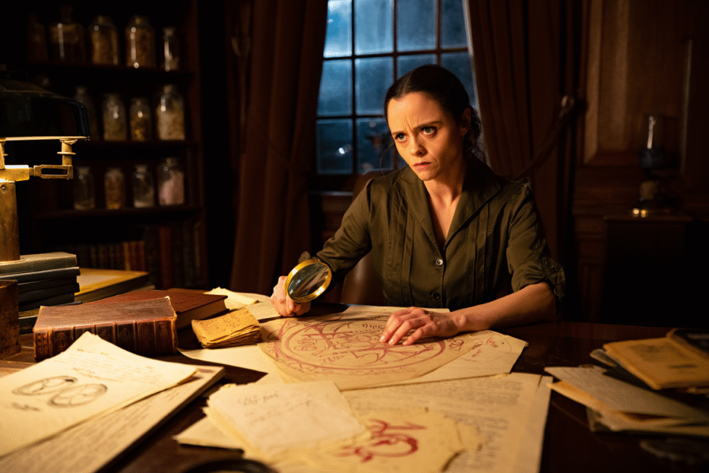 Christina Ricci’s Dr. Eleanor Vance brings intelligence and urgency to the unfolding mystery. As an occult historian obsessed with the legend of the house, she provides the crucial knowledge needed to understand the terrifying system holding the spirits captive. Ricci plays the role with quiet intensity, grounding the film’s supernatural chaos in scholarly determination.