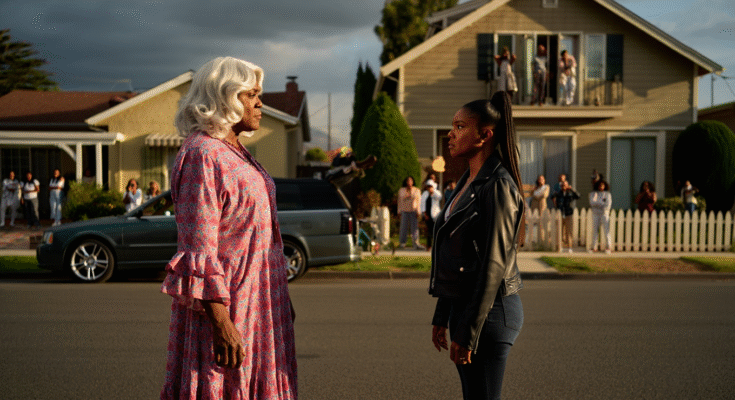 Tyler Perry is back behind the wheel of pure chaos, and this time, Madea has traded in courtroom drama and family feuds for the deceptively quiet life of the suburbs. Madea and the Damn Neighbor (2025) might sound like a small story — a feud between next-door rivals — but under Perry’s direction, it explodes into one of the funniest, most fast-paced, and unexpectedly heartfelt comedies of his entire Madea saga.