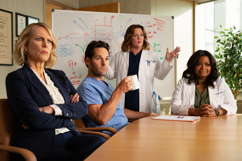 Melissa McCarthy leads with one of her most compelling star vehicles in years. She plays a doctor whose methods appear reckless, whose bedside manner is wildly unpredictable, and whose behavior constantly leaves colleagues bewildered. Yet McCarthy wisely avoids caricature. Beneath the comic chaos is sharp intuition, emotional intelligence, and a mind that sees patterns others miss.