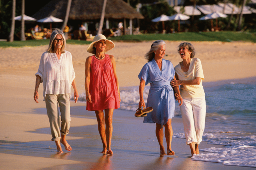 The seaside setting is more than a backdrop — it is metaphor. The ocean represents movement, unpredictability, and renewal, while the shore becomes a place where past and future briefly meet. Diane, Vivian, Sharon, and Carol arrive hoping for relaxation, but what they truly find is perspective. The film knows that some getaways are less about escape and more about hearing yourself think again.