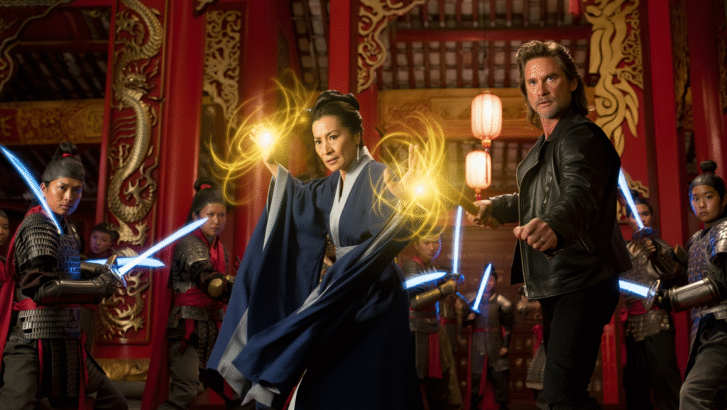 The action is as outrageous as fans could hope for: explosive martial arts showdowns, gravity-defying duels against armored spirits, and a climactic battle that transforms Chinatown into a kaleidoscope of fire, lightning, and myth. Practical stunt work blends seamlessly with CGI flourishes, keeping the spectacle tactile without sacrificing scale. The film embraces its pulp roots, refusing to apologize for its larger-than-life theatrics.