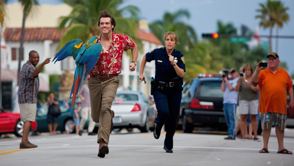 The film also plays with modernity in a way that feels refreshing. Ace’s old-school, anything-for-a-laugh approach collides with today’s technology-driven world, leading to brilliant sequences where his bizarre methods outsmart high-tech security or confound polished professionals. Watching Ace wrestle with drones, apps, and GPS trackers is comedy gold, especially because he approaches them with the same seriousness he would apply to a missing toucan.